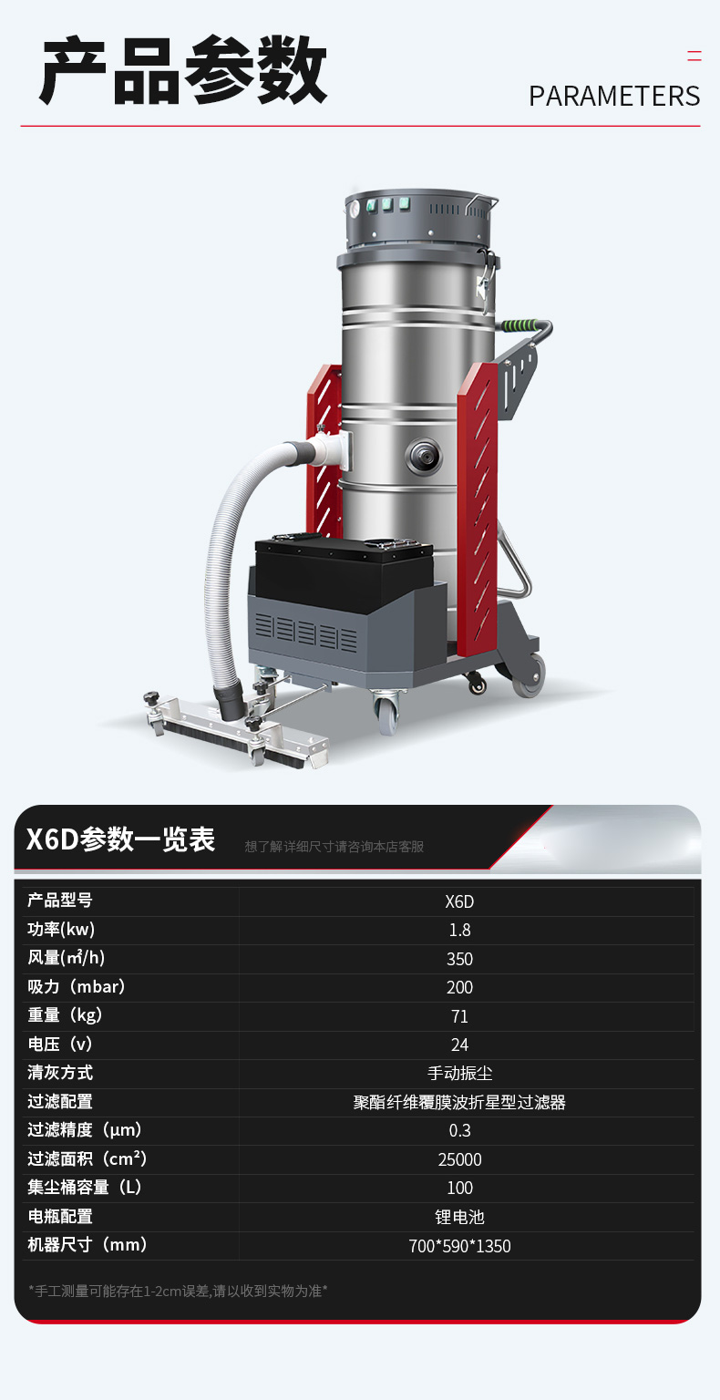 岳阳坦洁锂电池双桶工业吸尘器X6D系列